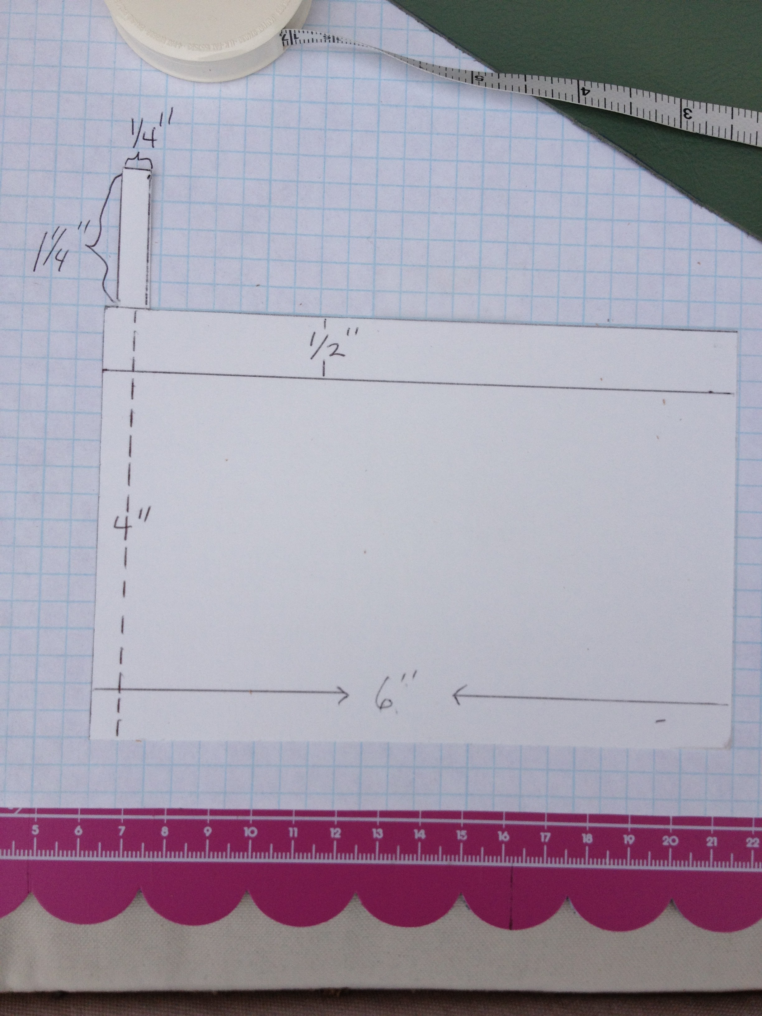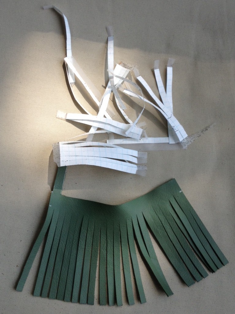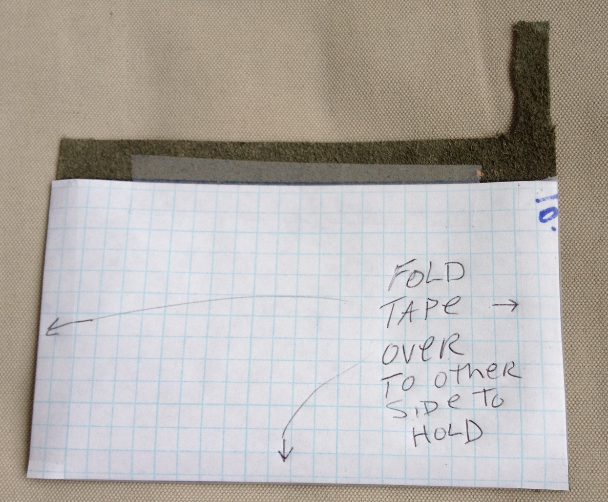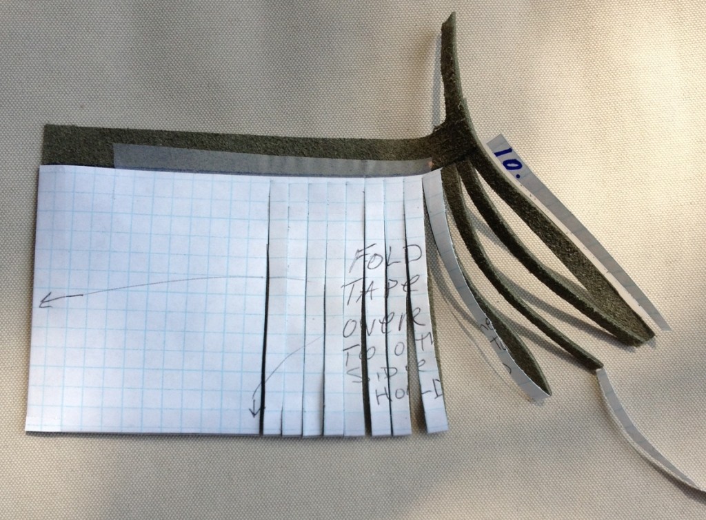 Next you will tape the grid paper onto the back of the leather. Carry the tape around to the front.