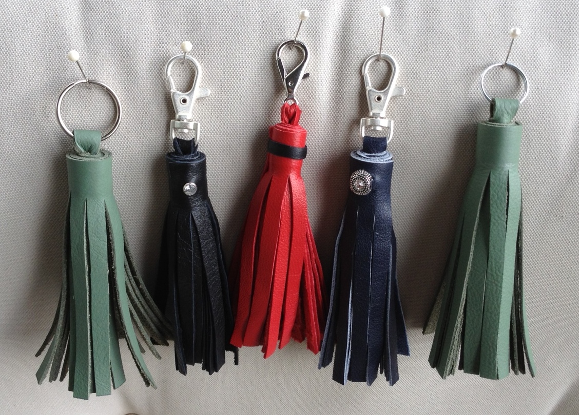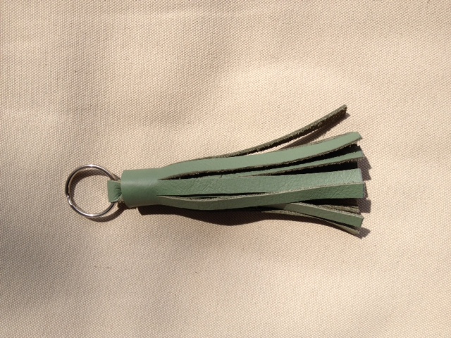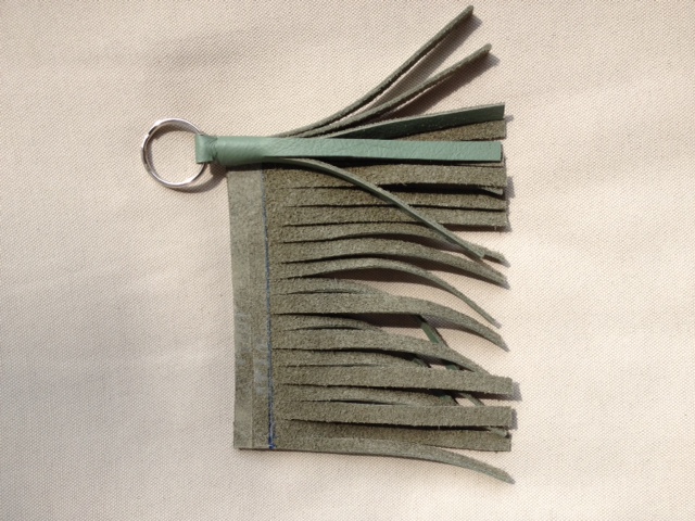 - The tassel we are making. This one is set up to be a key ring. I will show pictures and information at the end to make modifications. This tassel is 4.5 inches from top of leather loop to the bottom of the fringe.