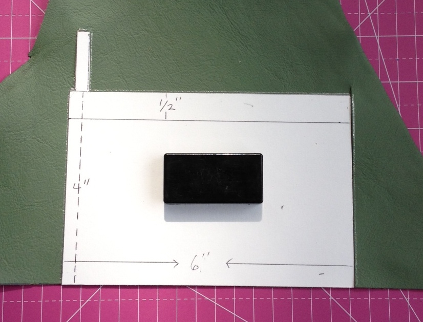 Lay your pattern on your leather. Either cut it our or trace around it with a pen and then cut it out. I am using a magnetic cutting board and large magnet to hold the pattern down. Just don’t pin your pattern down as it will leave holes in the leather.
