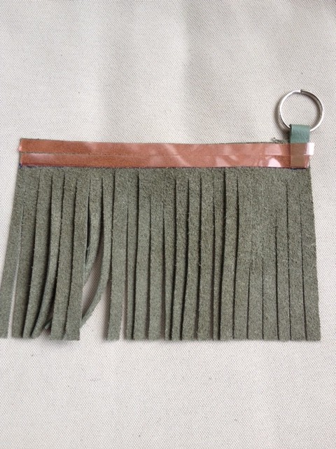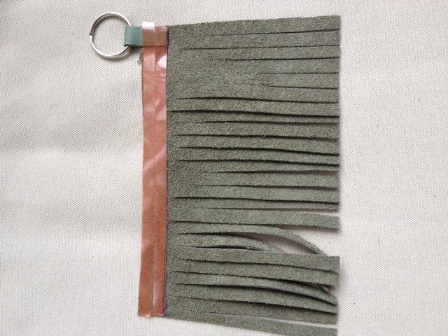 Okay, let’s put this puppy together! Grab your double sided tape, key ring and fringe.
