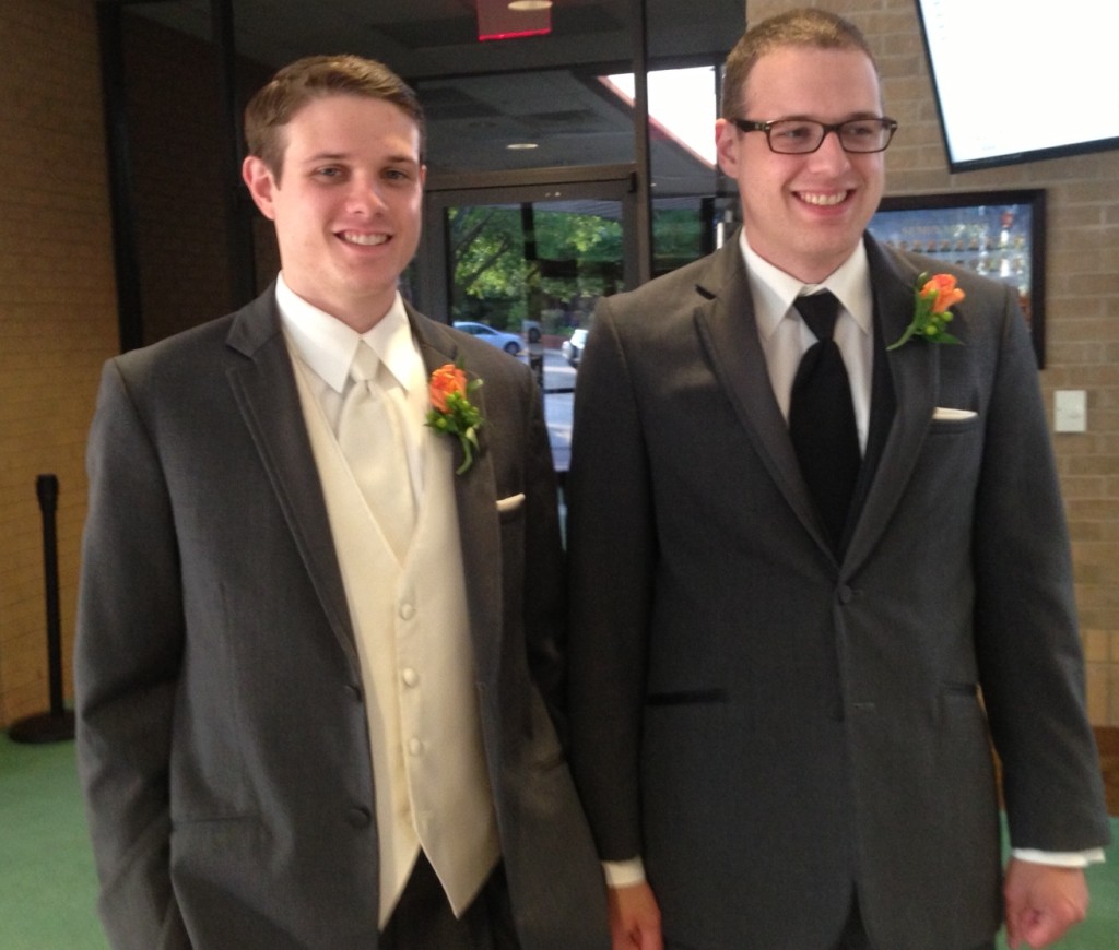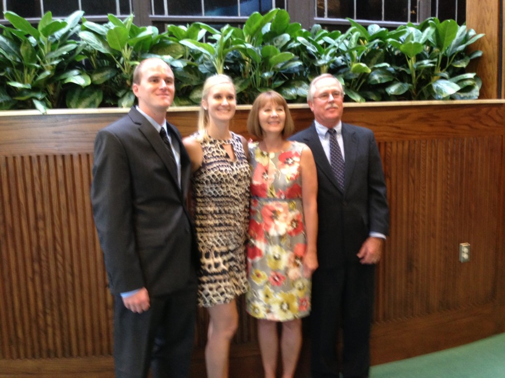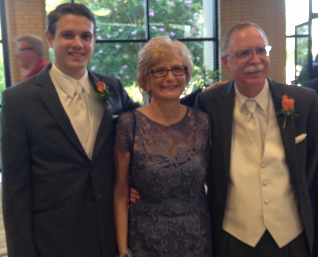 My 5 siblings and I got together over the weekend to celebrate the marriage of my nephew, Austin, to the lovely Emily. Seven of the twelve grandchildren, including the groom, were also on hand to witness the beautiful wedding. Our first cousin, Molly, and her family made the trip, which was very wonderful. We ate, we drank and some of us danced! The ceremony was touching, the bride was stunning and the weather was fabulous for July in Oklahoma. I do believe we all had a delightful time. The groom’s brother, Adam, had to leave after the reception, headed for a month’s assignment in Japan. Such is the life of our busy family. I downloaded the iPhone pictures from our two cameras. Also snagged a few shots from others and hope to augment with even more photos in the days ahead. I did not get a picture of Mary Jean and Ray or Kelly. The Teal family picture is blurry! What is up with that? Anyway, let’s take a look: