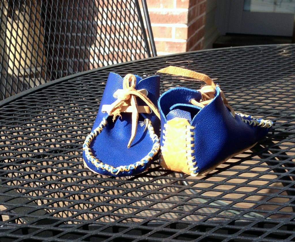 Well wonderful people, it was a fabulous weekend of art shows, good food and blue baby boots. Let’s start with the boots, shall we? This is my first try at working on leather baby boots. They are done in blue and gold leather for a future University of Kansas fan. I sure think I can improve on my pattern, but that is fun for me! Here are the pictures: