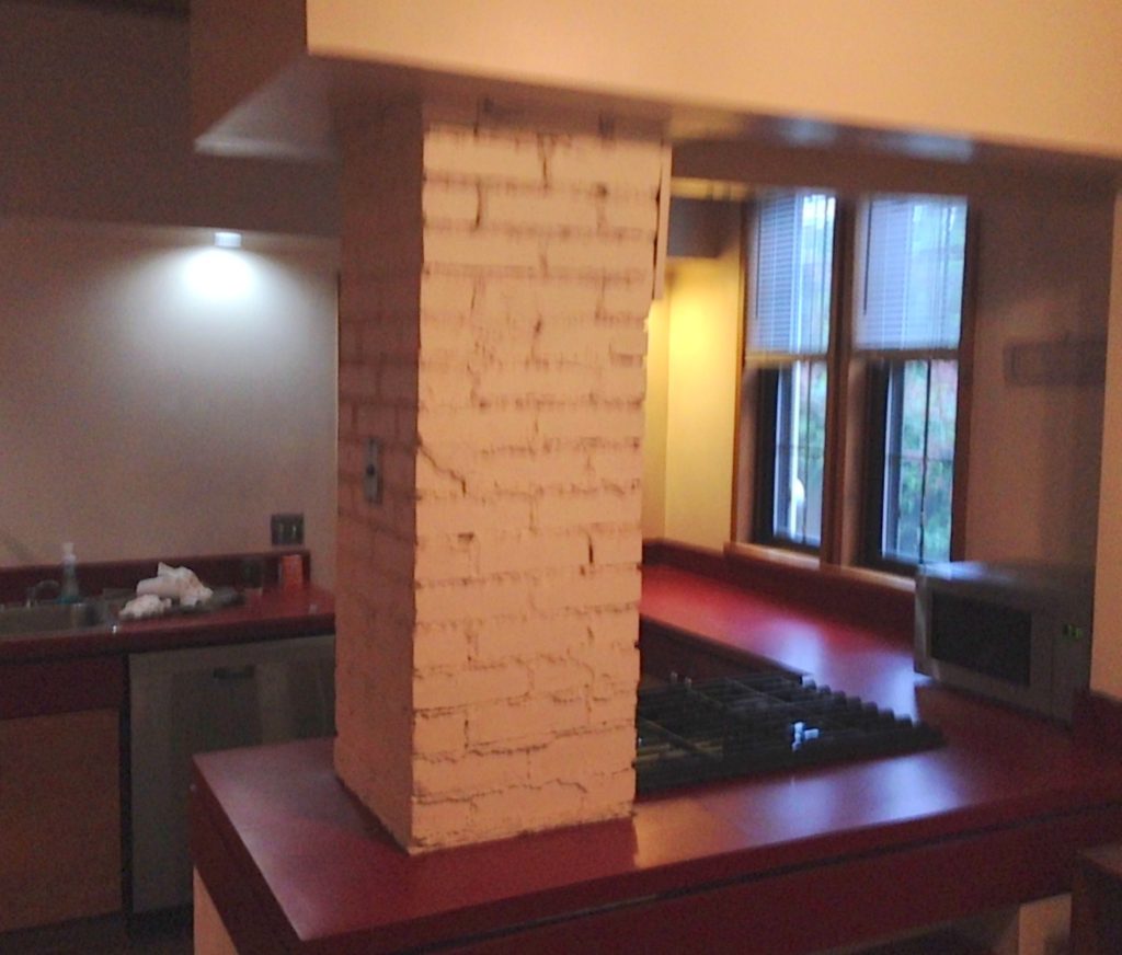 Randy went to Tulsa for a week to play general contractor at our house.  We had a new roof put on and several other projects that needed to be done.  The biggest visual project was getting rid of the utility chimney that sat squarely in the middle of the kitchen.  Having taken down two similar chimneys in our Fayetteville house, we knew what a huge job it was going to be.  It was worth it!
