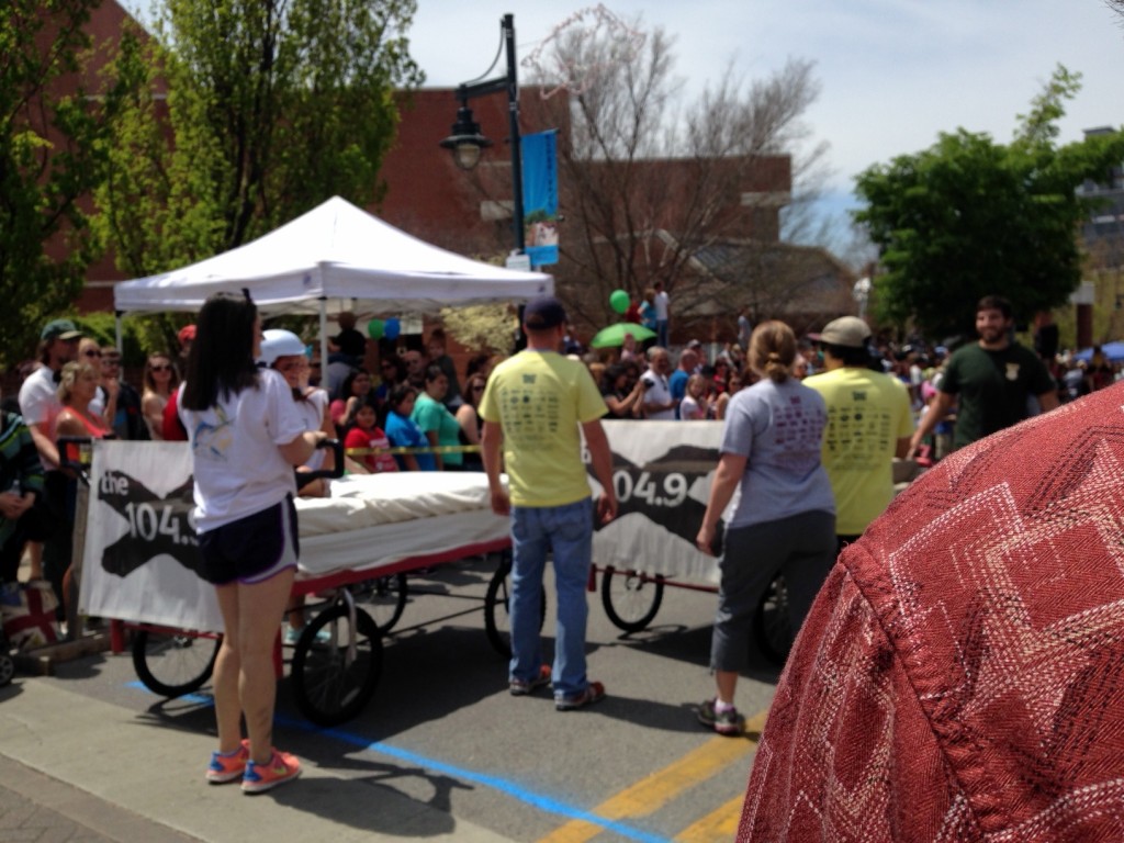 We went to Springfest over the weekend and watched the bed races on Dickson Street. The weather was gorgeous and the crowd was happy.