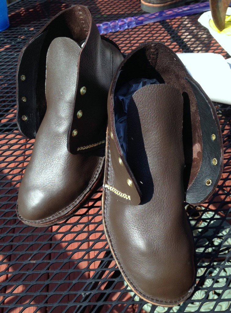 James and I almost finished our boots and shoes. We did manage to break my sewing machine and the sander was pre-broken from the manufacturer! As soon as the new sander comes, I will be able to finish the edges and wear them!