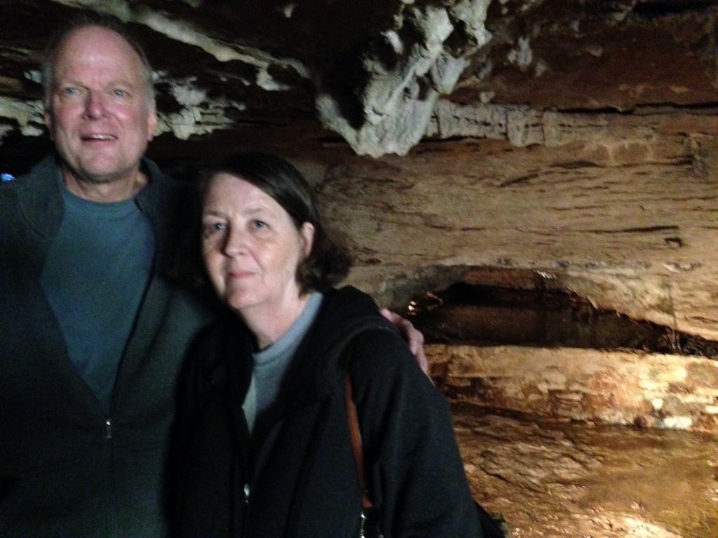 Well, because we are retired, we took another trip and this time we went caving on a warm fall day! James was visiting us, so we ran up to Table Rock lake for a few days. We did some eating, some listening to great music and some relaxing. On our way home, we made a couple of stops to enjoy the gorgeous fall weather and foliage. We took a cave tour and had a wonderful tour guide. I had not been in a cave for many a years and I enjoyed it, bats and all!