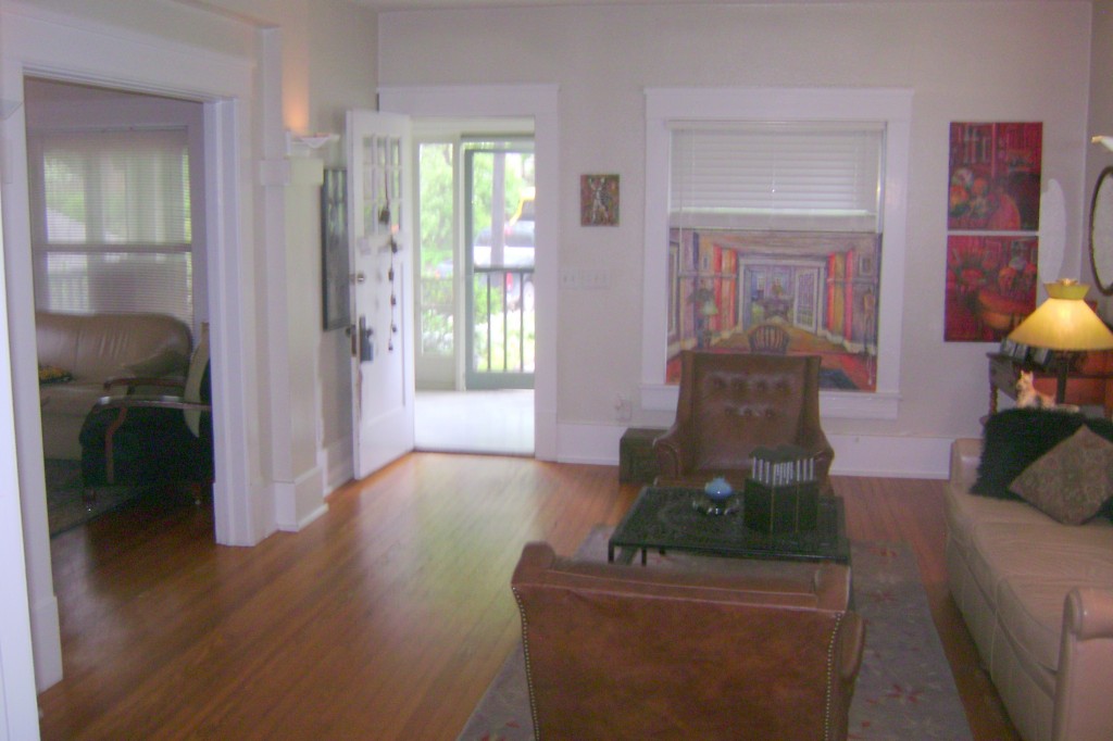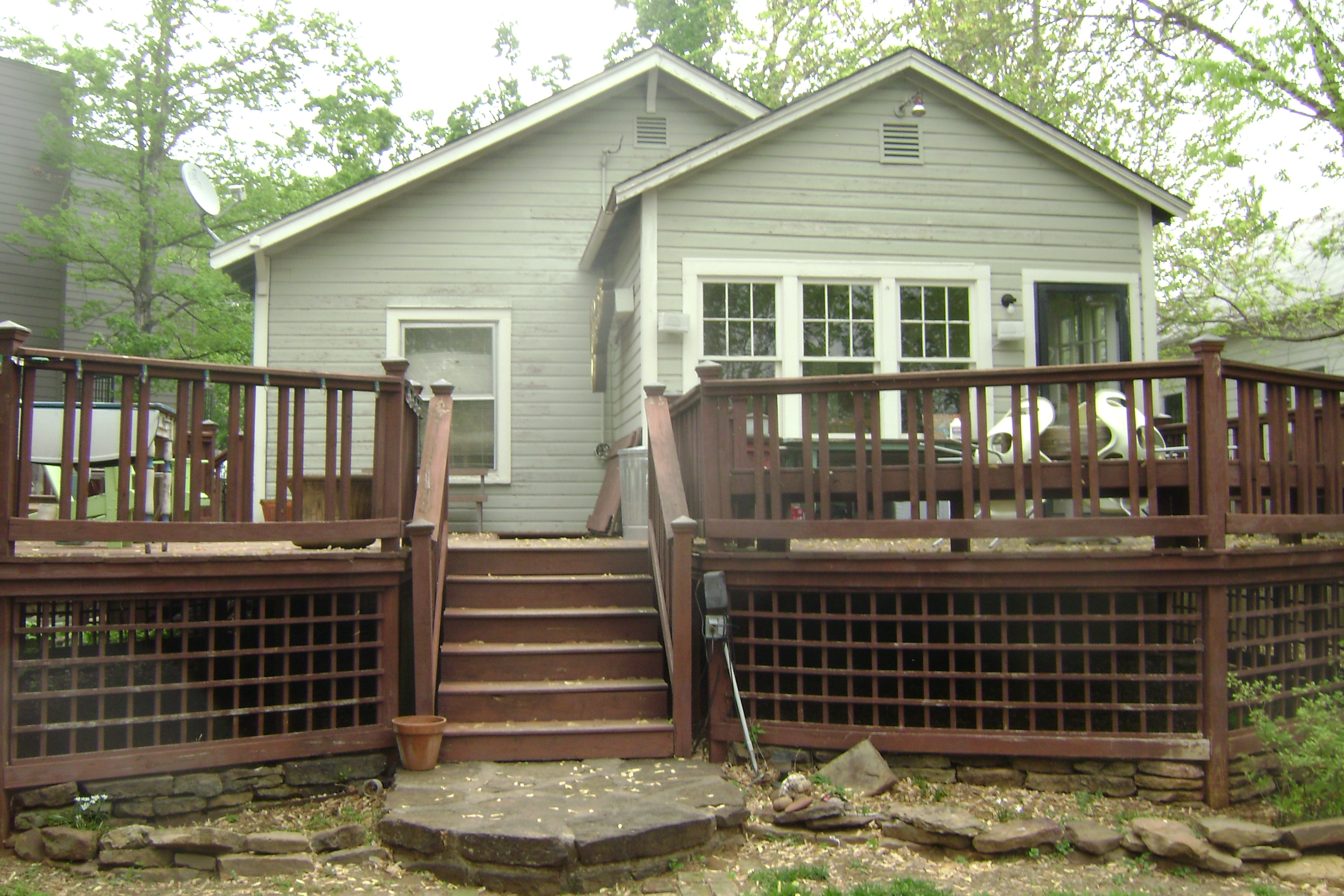 Well, well, well three readers, it is I, just back from an incredibly quick trip to Fayetteville to see the house, some art and attend a couple of meetings. First I will let you in on a few of the discussions we had with the contractors. They put two sinks into the very petite bathroom plan. I told them we were not really the “we have to have two sinks or we will die” kind of couple. I do not know if it is because Randy is one of 5 kids or I am one of 6, but we can manage just fine with one sink. We are just glad we have a bathroom. Now, on another subject area, we will have a kitchen in the house. That disappoints me greatly because I am DONE with cooking. 30 years of meat, potatoes, green beans and bread are enough for any one person to deal with. Yes, I can cook, but I choose not to. I guess Randy will have to learn or starve. We told the designer that we had never had granite countertops and you would have thought I told her we were from MARS. I thought I was going to have to use smelling salts to revive her. Here are some “before” pictures we have of the house: