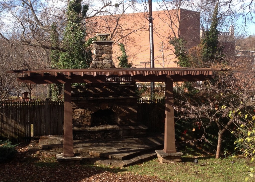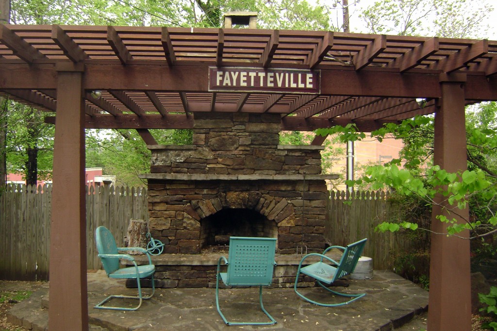 The best part of the backyard is the fireplace and the view of OLD MAIN on the University of Arkansas Campus.