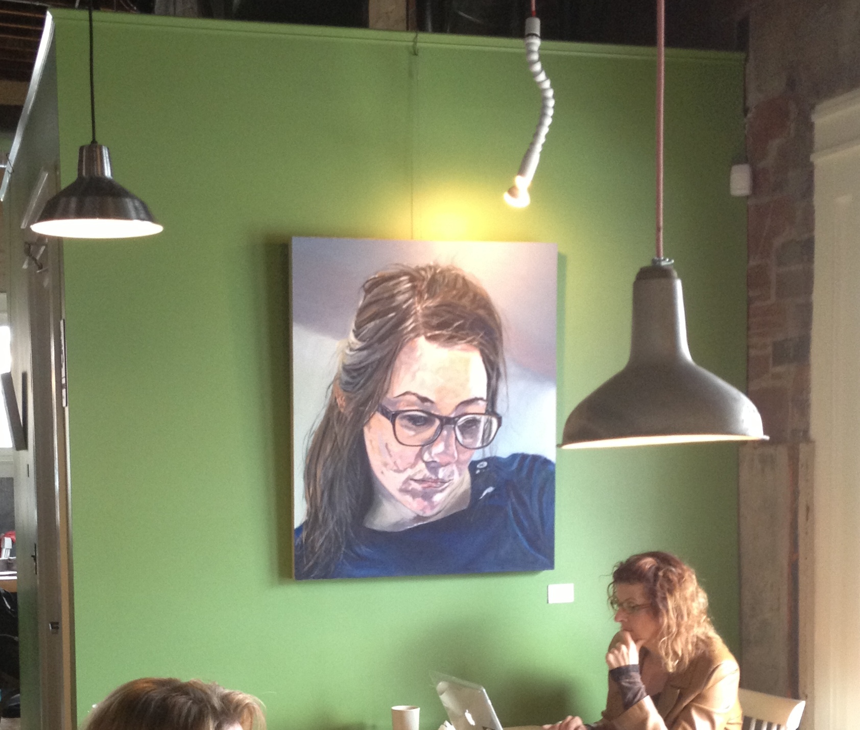 After that, we headed over to Arsaga’s on Dickson for an art reception, that included my brother in law Ray’s painting of “Girl in Blue Sweater”. Here is a great picture that I (the woman that is photography phobic) managed to snap: