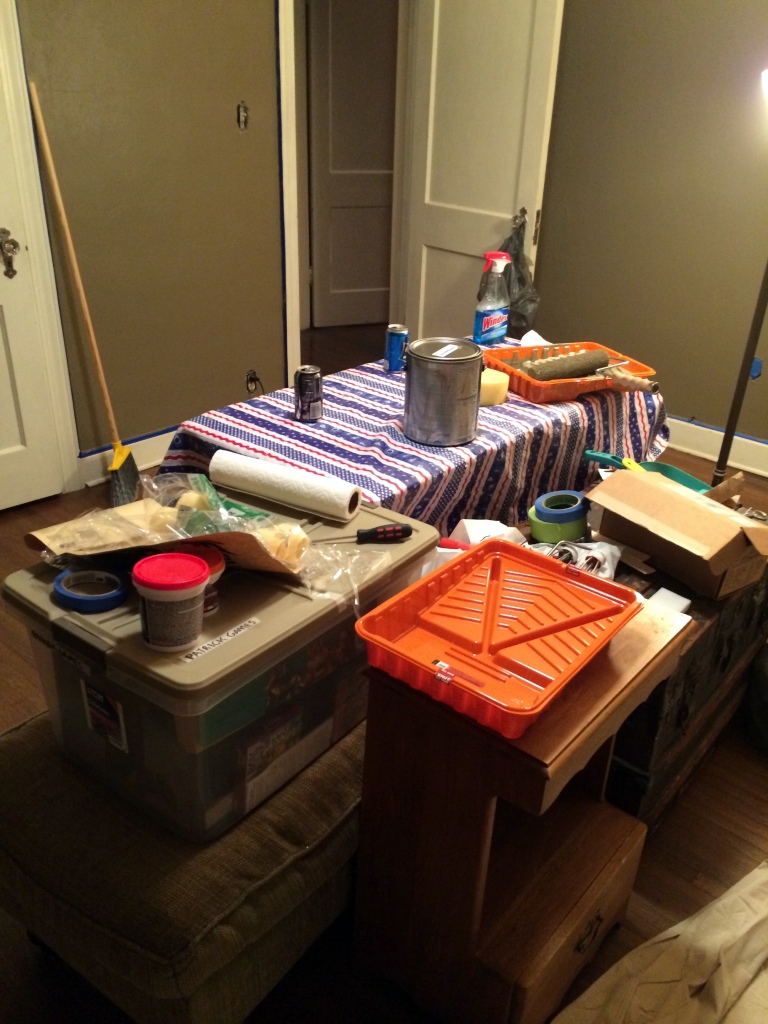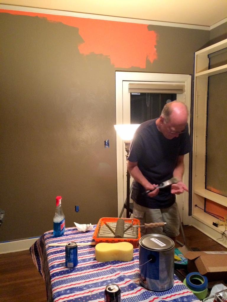 James is moving in this week, so Randy decided to paint before the furniture arrived.  He had paint helpers for part of it.  James and Patrick helped when they could.  In progress: