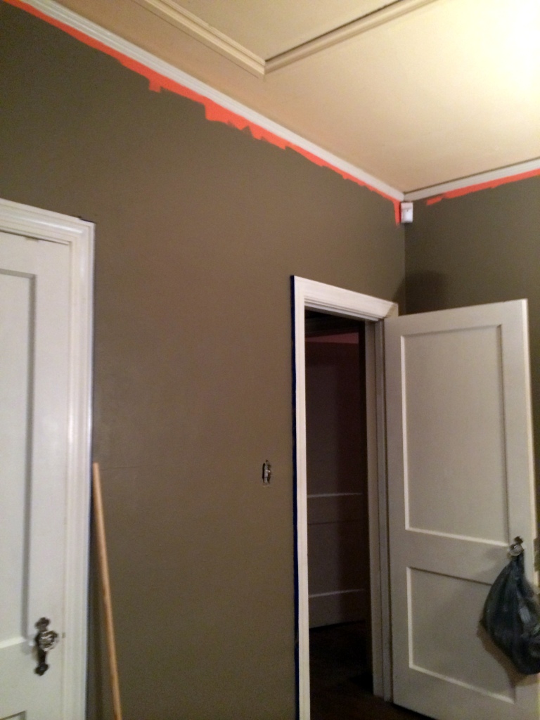 The two other bedrooms were painted a shade of something that could have been orange or peach or pink or something.  The funny thing is the master paint we pulled down was the same color.  Someone really, really liked that color OR maybe during WWII it was the only color available?