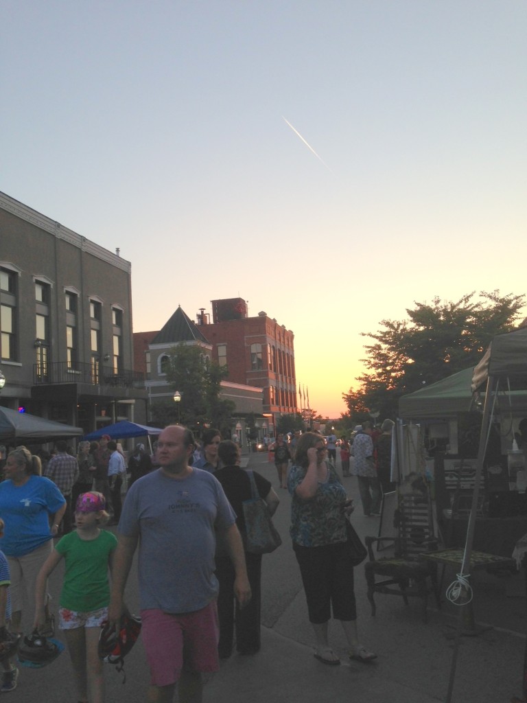 After a great holiday, Randy and I spent the week running around. We hit the Farmers’ Market, Crystal Bridges Museum of American Art and Fayetteville’s First Thursday celebration on the square downtown. Here are a few pictures of the market and the celebration on the square: