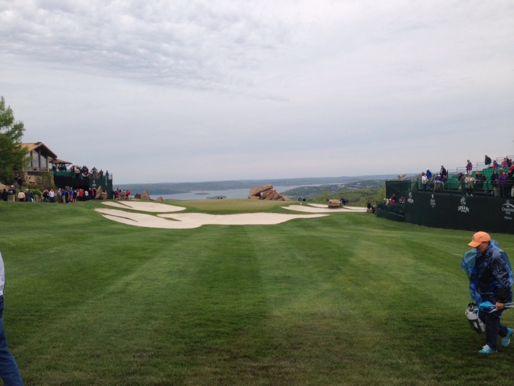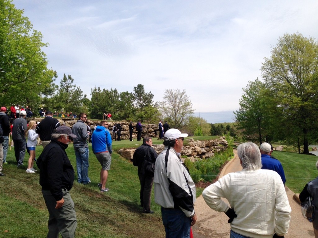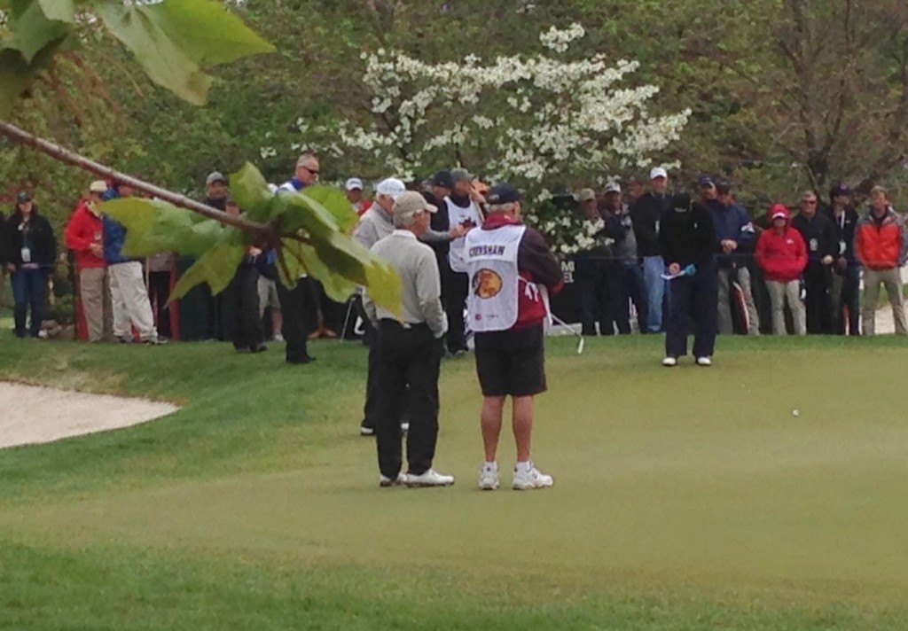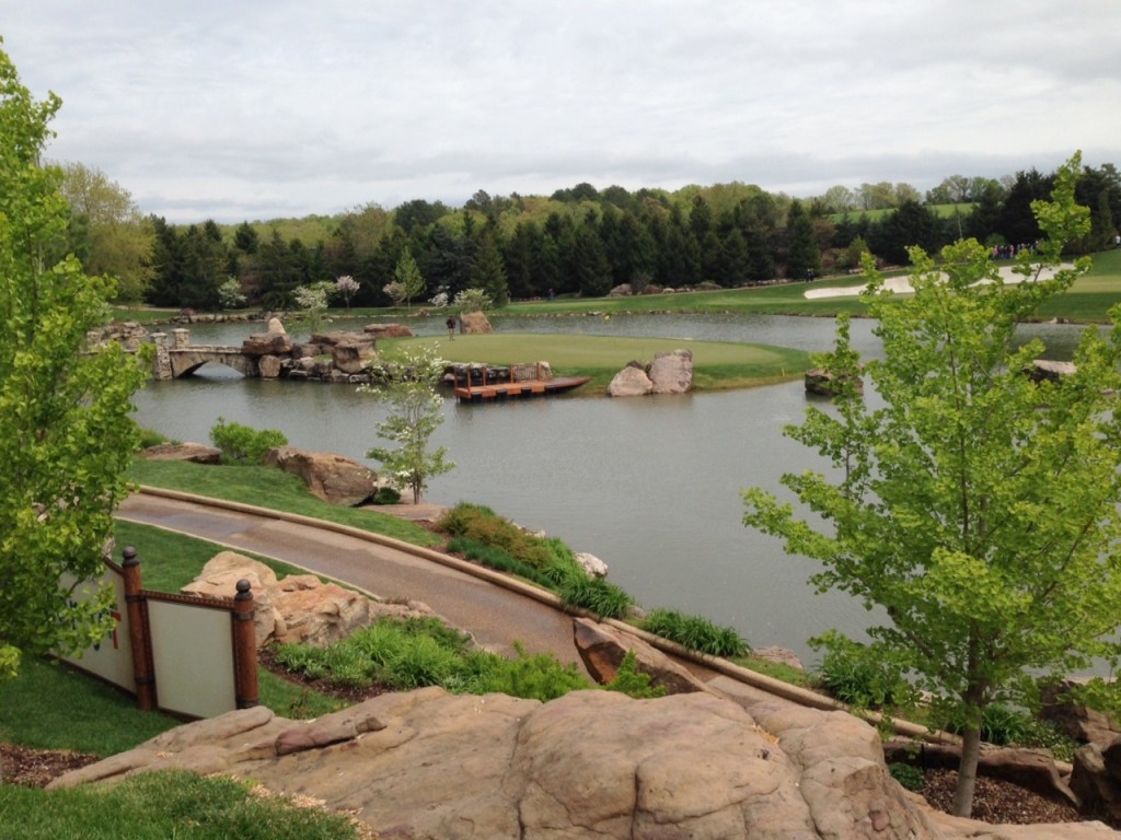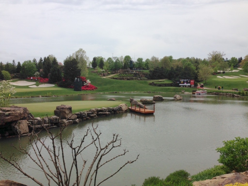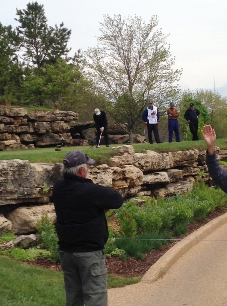 I was pretty sure that I would go to my grave without ever attending a golf tournament, but that changed when we went to the Legends of Golf tournament this past weekend. We met my sister, Liz, and her husband, Charlie, at Big Cedar Thursday. We were able to get in a fabulous dinner at the Worman House and a horrible movie before the day of the tournament. Friday, rain was in the forecast for tee time, so we had a leisurely breakfast and waited for the storm to blow over. It was still very cool and damp, so we dressed appropriately.