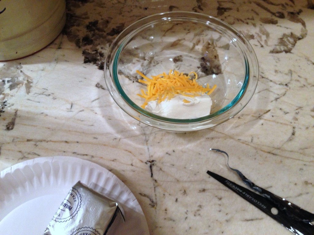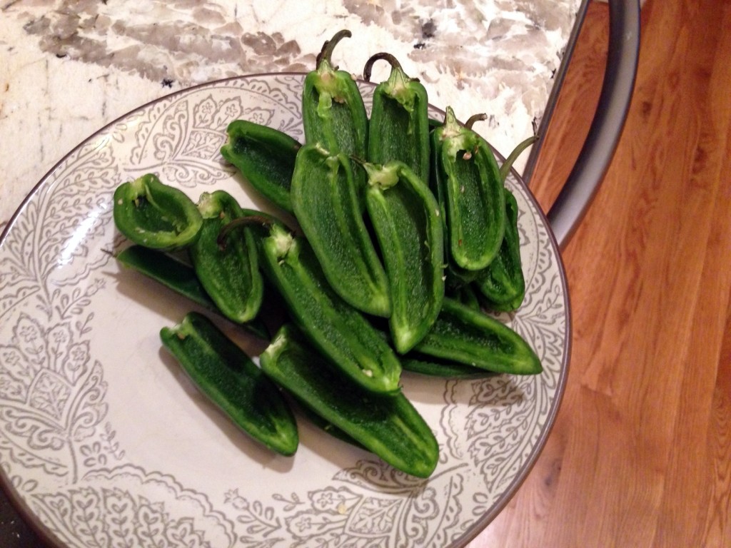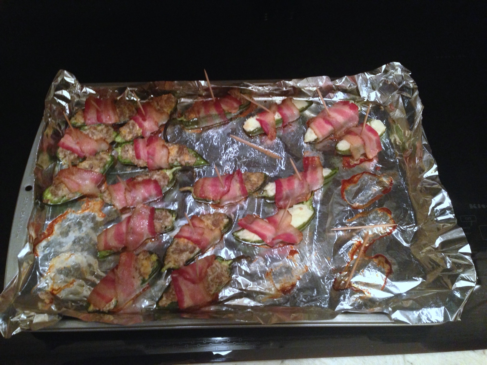 One of the many skills that my dad taught my children was how to shop for groceries and then cook them up. My son, James, is spending some time with us right now. Last night he decided to make jalepeno poppers to savor during the Thunder game. Let me tell you, these were delicious! He did not use a recipe per se, just kind of winged it. He made two different fillings, one cream cheese and one cream cheese with sausage. I have to tell you, they were delicious and it warmed my heart that he made these for our dinner! Here are the pictures:
