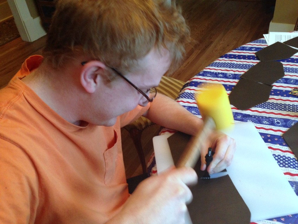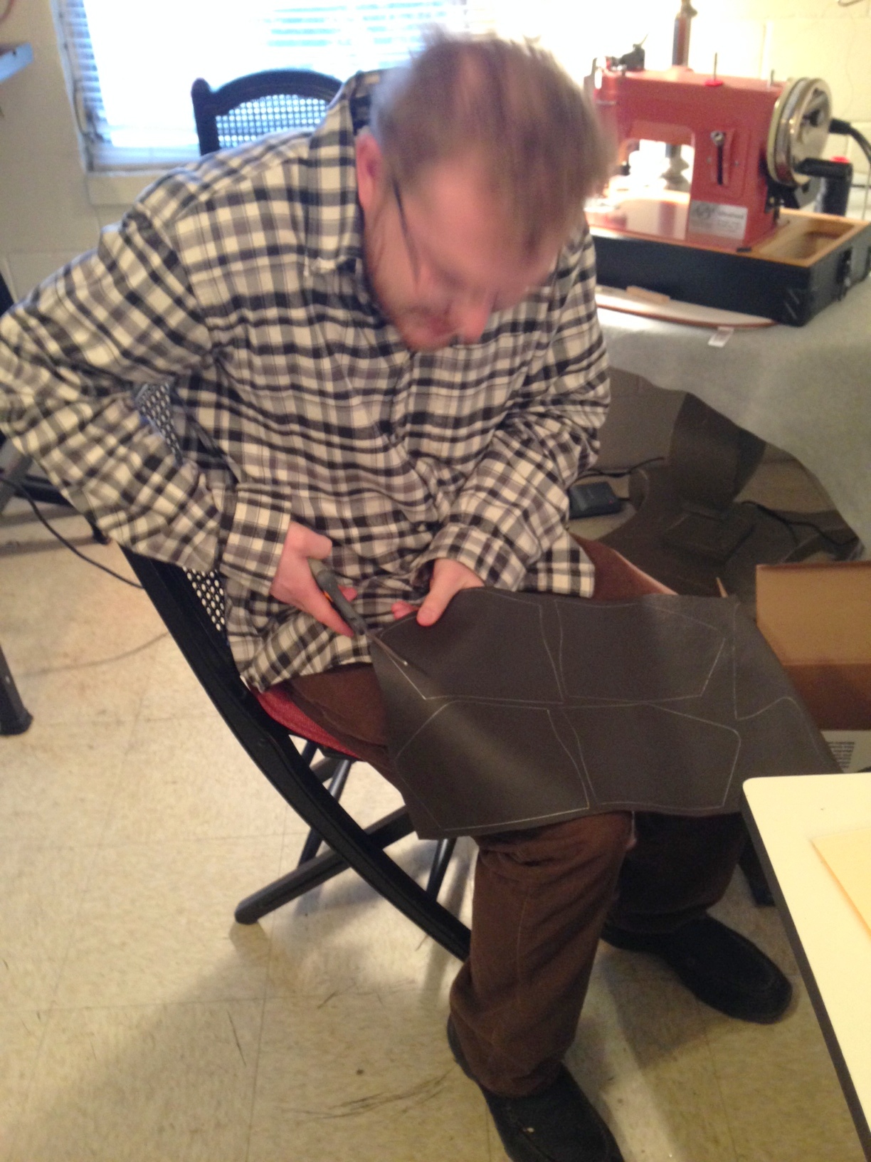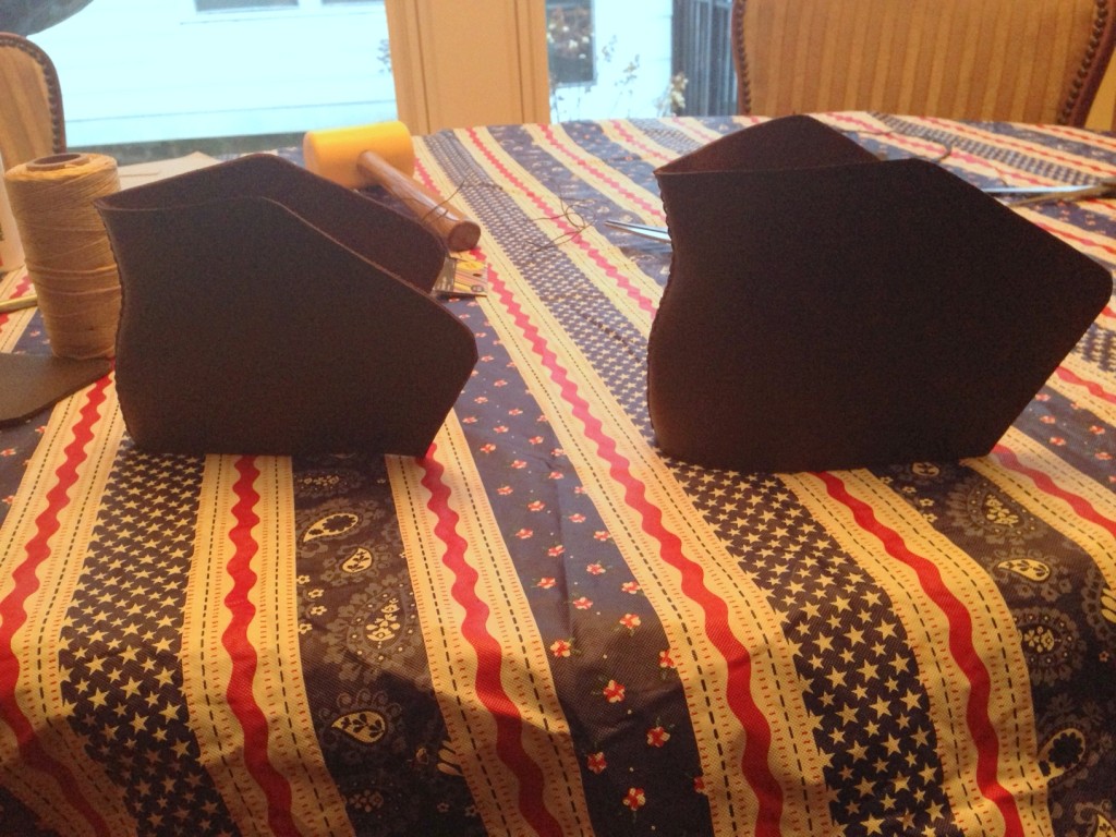 Thirdly, James and I are making boots! Brown boots to be exact. I have some pics below for your perusal. James is a natural on the sewing machine. Sat right down, sewed leather like a pro! Might have to hire him.