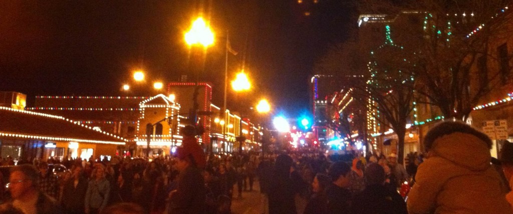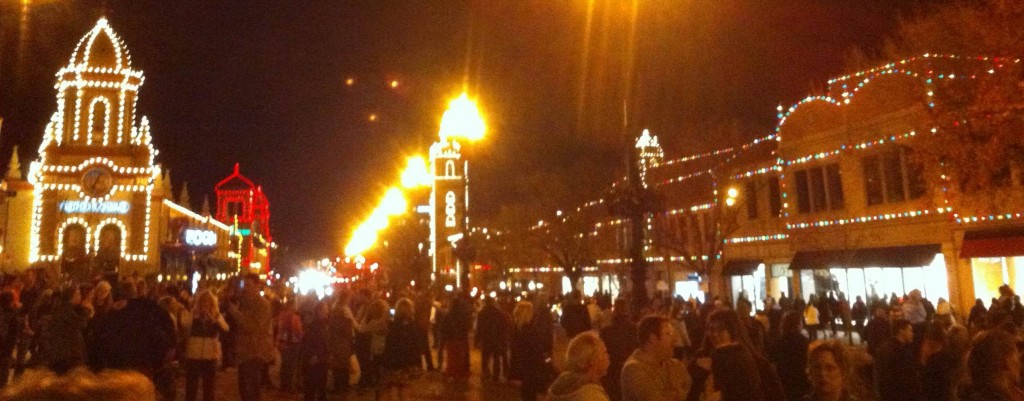 Thursday dawned and we did what most everyone did on Thanksgiving. We headed out to Lake Quivera where Pat and Martha had prepared a wonderful meal of turkey and all the trimmings! Martha’s mom brought my all time favorite side dish of pea salad. I was in heaven. After a great day with friends, family and a few people we didn’t know, we all headed back to the Plaza for the lighting ceremony.
