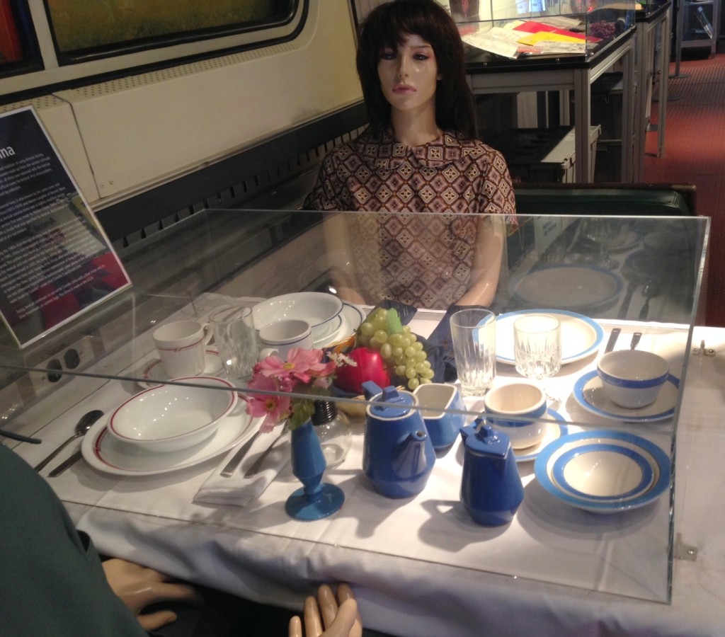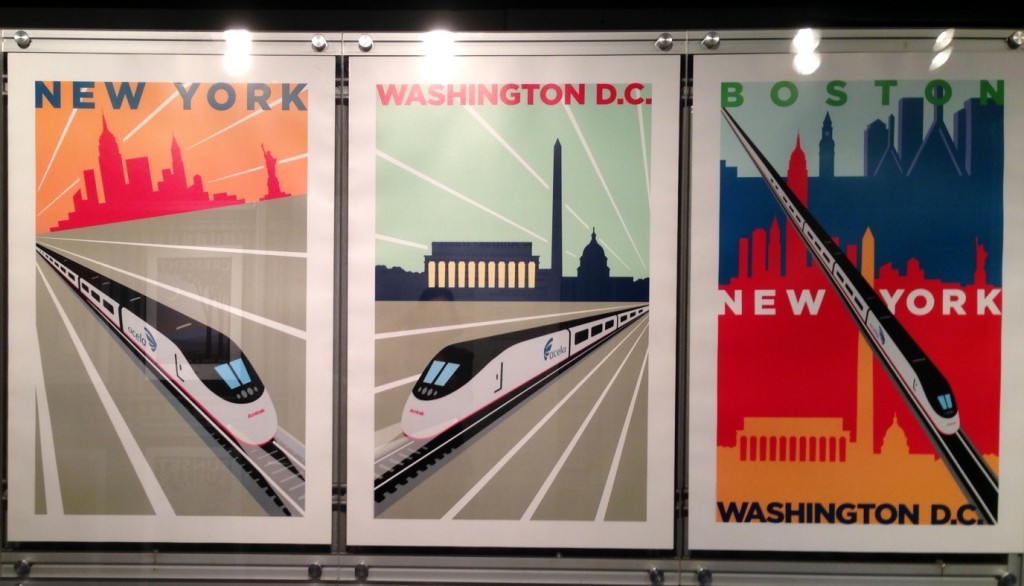 Today after brunch, we headed to Springdale to see the Amtrak exhibit. My favorite things were the “fake” people having lunch and the posters. Here, take a look: