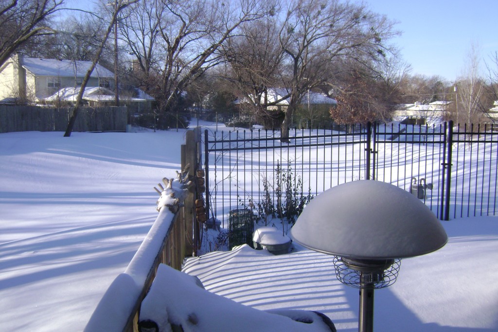 We had our very first COLD day today. It was sunny and around 25 degrees this morning. Luckily, no wind on the plains. Here are two pictures from our two blizzards (a first for Oklahoma) two years ago. Makes me cold just thinking about it.