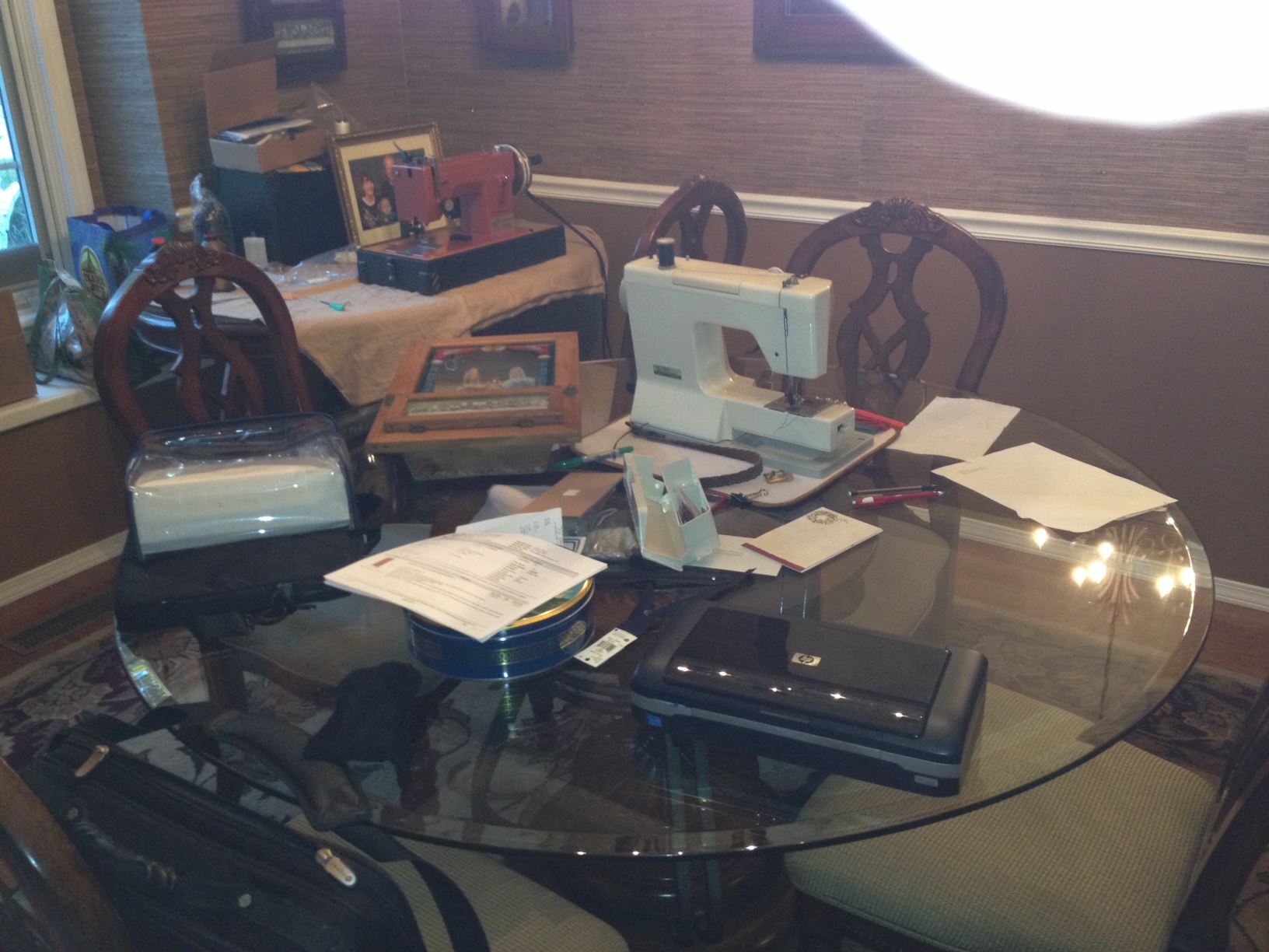Well, let’s just say that this morning has been interesting. I could use other adjectives but interesting seemed safe. While I was working on my Friday post, I ran into technical issues. Some might call them operator (me) errors but whatever. I decided to step away from the computer and focus my attention elsewhere. Randy and I have both had a parent die in the last year. When that happens, you end of with “stuff” lying around. In our case, a lot of stuff. So I went to my desk, sewing room, dining room table and took a good look around. At that point I realized I needed another cup of coffee before proceeding!