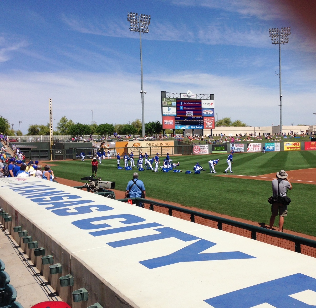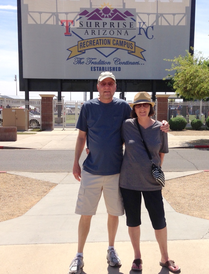 Randy and I took a lovely trip to Surprise, Arizona to see the Royals during their spring training. All I can say is WOW! We had such a great time. We took in two games, had 2nd row seats behind the Royals dugout and even I enjoyed the games! The stadium was beautiful and the crowd was huge. The Royals beat the Mariners and fell to the Cubs but both games were great. Here are the proverbial pictures: