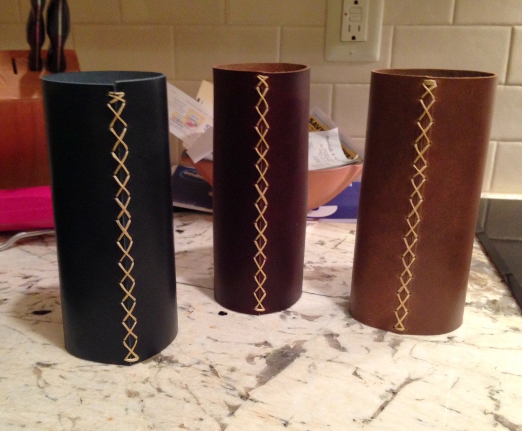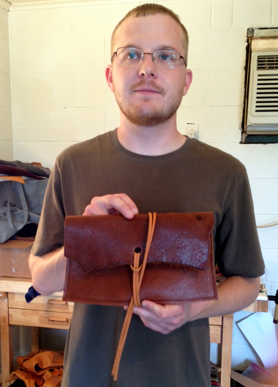 Well, enough about THAT James and his trip. Let’s move on to the other James, my son. He is visiting us in order to help me in the studio. So far we have managed to make 6 to 7.5 bags, 3 half finished wine carriers and one credit card case. In case you don’t believe me, here is the evidence: